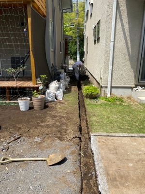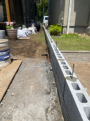 隣地との間にフェンスをすることになりました。なるべくシンプルなものを!ということでブロックの上にアルミフェンス。これなら風通しもよさそうですね。