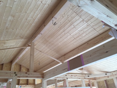 開放感をもたせるために、2階は勾配天井です。 断熱や天井板を張る手間はかかります Read More