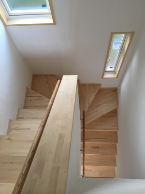 回り階段です。 階段途中が暗くならないよう窓を大きめに設けました。 低い位置の窓 Read More
