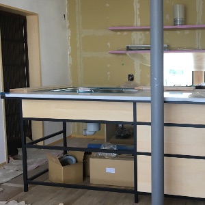 25mmの角パイプを使用したフレームキッチンに、必要箇所のみシナの面材をはめ Read More