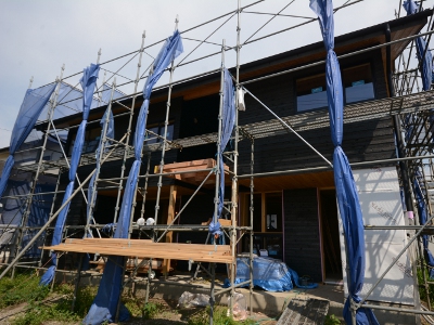 約2坪弱の吹き抜けにスノコ張りのキャットウォーク(渡り廊下)があります。 寝室と