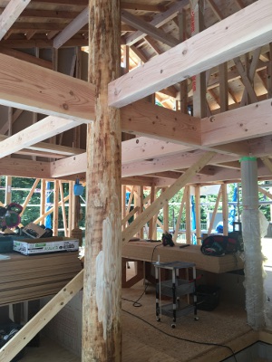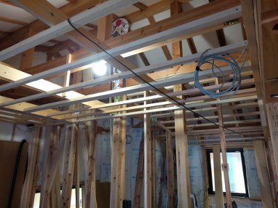天井の下地となる野縁(のぶち)を組んでいきます。 煙突部分の下地も作ります。 木 Read More