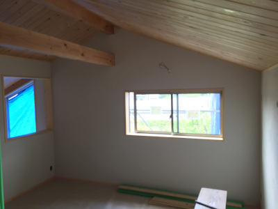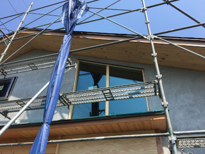 群馬現場の下塗り工事が終わり、仕上げ塗りをしてきます。【準平屋1.5階建ての家】