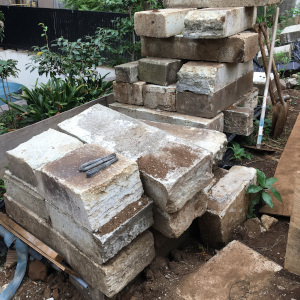 解体工事をした時に、大谷石がこんなに出てきました。 庭造り用に一時保管しています Read More