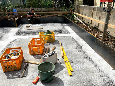 外周に枠を組み、捨てコンクリートを打ちます。
