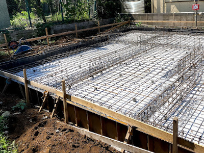 ベタ基礎の底の部分のコンクリートを最初に打設します。