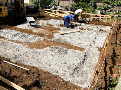 いよいよ基礎工事らしくなってきました。 現在の主流であるベタ基礎の底盤部分を転圧