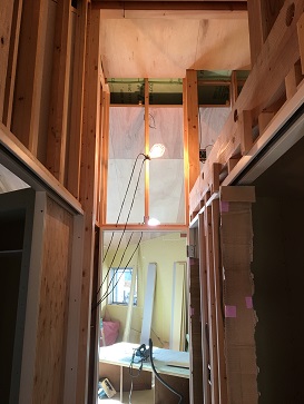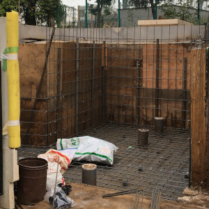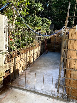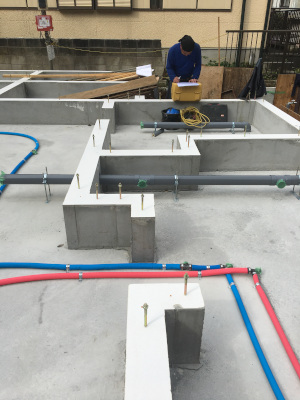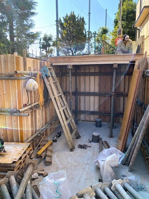 底板コンクリート打設が終わると、墨だしをし、階段の型枠を組んでいきます。