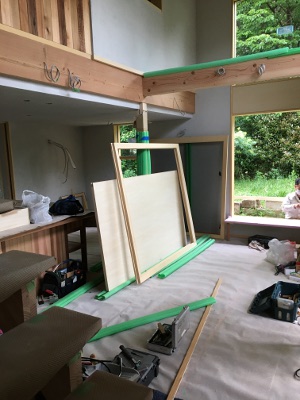 木製建具を搬入し、調整に調整を重ね、設置していきます。