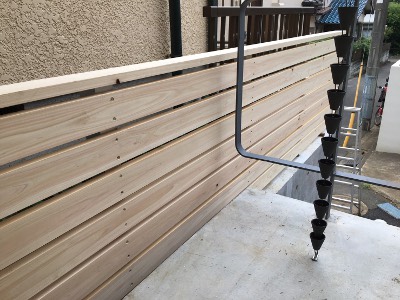 お隣さんとの間に新しく塀を作りました。 檜の板を使用。 『塗装する予定でしたが、 Read More