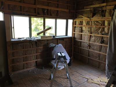 まずは、天井・壁の順で解体をしていきます。 下地の状態も確認しながら、傷んだもの