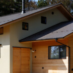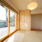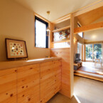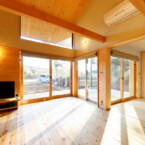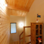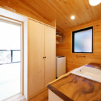 | 仕上材 | 外壁/ジョリパッドゆず肌仕上げ、杉板鎧張り 内壁/中霧島壁、サワラ羽目板、タイル 床/無垢フローリング(杉) 土間/モルタル金こて仕上げ 天井/中霧島壁、サワラ羽目板 ウッドデッキ/クマル 屋根/ガルバリウム鋼板 |