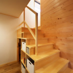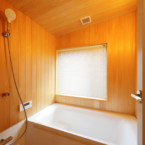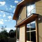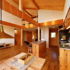 | 仕上材 | 外壁/そとん壁かき落とし仕上げ、杉板鎧張り 内壁/エコクイーン、タイル、サワラ羽目板 床/無垢フローリング(ナラ) 土間/モルタル金こて仕上げ 天井/エコクイーン、サワラ羽目板 軒裏/サワラ羽目板 ウッドデッキ/クマル 屋根/ガルバリウム鋼板 |