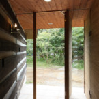 これらの要素は外部から内部まで、貫通して同じ仕上げが施されており、室内にいてもそのゾーンニングを充分意識する事が出来る。(2)のチンキング部分は少しヨーロッパのテイストが意識されている。ワインセラーを思わせるアーチ型の廊下やそこに配置された証明器具は、この別荘を訪れる人を一気に非日常の空間へと引きずり込む工夫の一つ。(1)のLDKは6mの天井高を持つ大きな空間。高い天井と大きな開口部がこの空間にゆったりとした時間の流れを与えている。