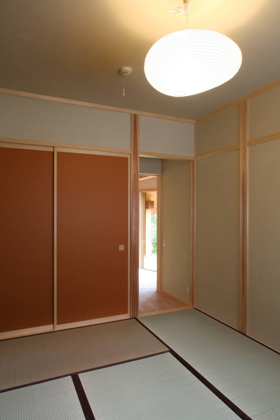 第二の客間は和室  イサムノグチの照明と襖の落ち着いた配色が訪れる人もてなしてくれる