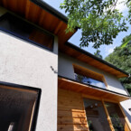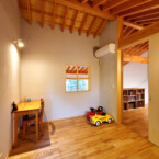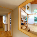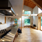 | 仕上材 | 外壁/ライムコート洗い出し仕上げ ウエスタンレッドシーダー鎧張り 内壁/中霧島壁、タイル、杉羽目板 床/無垢フローリング(ナラ) 土間/モルタル金鏝仕上げ 天井/中霧島壁、杉羽目板 軒裏/レッドシーダー羽目板 ウッドデッキ/イペ 屋根/ガルバリウム鋼板 |