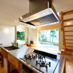 | 設備 | 給湯/ガス給湯器 キッチン/オーダーオリジナルキッチン アイランド型、ガスコンロ 背面カウンター 床暖房/富士環境システム 1F洗面/大判タイル+洗面ボール 書斎デスク/ナラ積層板 浴室/ハーフユニット+タイルとヒノキ板張り |